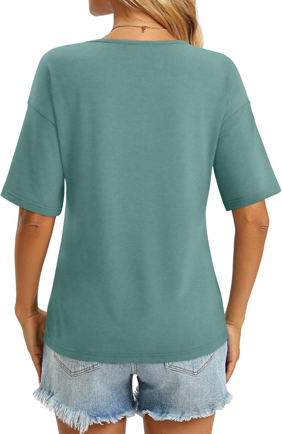 Women’s V Neck Tops Elbow Length Shirts Loose Fit Summer Tops Basic Tees(A Light Green (Elbow Sleeve))