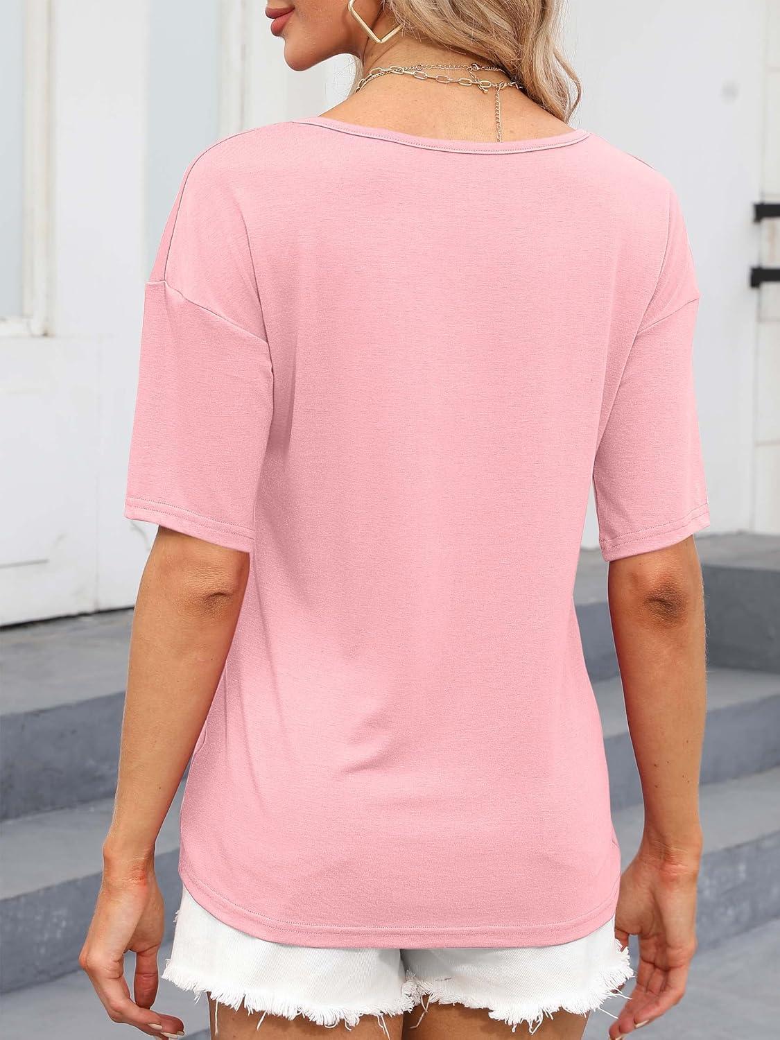 Women’s V Neck Tops Elbow Length Shirts Loose Fit Summer Tops Basic Tees(A Light Pink (Elbow Sleeve))